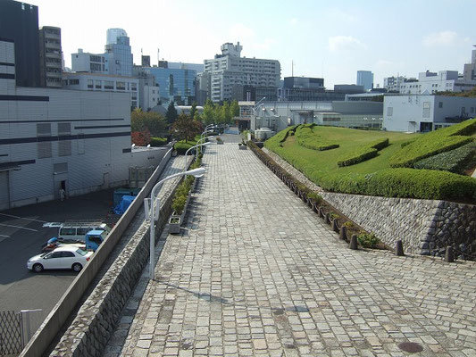 外構は、東京オリンピックに向けて主要道路が整備され、その際に廃止となった都電の路盤が使用されている。一面に敷き詰められた大判の花崗岩が、この象徴的な建築のステージとして見事な引き立て役となっている。