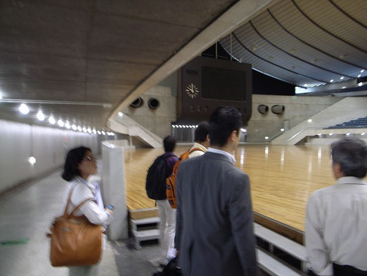 1964年に開催された東京オリンピックで建築された施設の中でも、特に建築的価値が高い故丹下健三氏の設計である国立代々木競技場(第一体育館)の見学を行った。建設時の文部省のコンセプトは“芸術性の高い建物”であった。その後、建設当初の水泳場から様々なスポーツイベント会場として時代に合わせて変貌を遂げ、築40年以上経った現在、明治神宮の杜など周囲の環境に調和し、丹下健三の代表作の一つであると共に建築的にも世界的に価値あるものとなった。本来見学は受け入れていない施設だが、弊社の勉強会の趣旨を説明し見学させて頂くことが出来た。